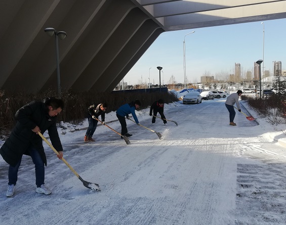 寒冷的天氣擋不住大家的熱忱,客運公司全體員工揮舞著鐵鍬和除雪鏟,齊心協(xié)力,干勁十足,鏟的鏟、推的推、掃的掃,干的熱火朝天,不亦樂乎,忙碌的身影構(gòu)成了一道亮麗的風(fēng)景線。經(jīng)過兩個多小時的奮戰(zhàn),將公司附近的路面和場站院內(nèi)的主干道積雪全部清除干凈。