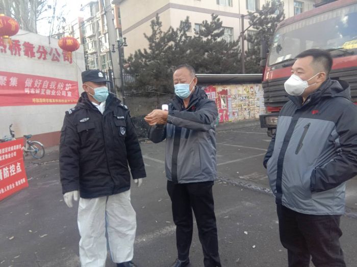 物業(yè)公司黨支部書(shū)記娜仁、經(jīng)理史濤等疫情防控領(lǐng)導(dǎo)小組成員還在項(xiàng)目現(xiàn)場(chǎng)參加出入人員登記、測(cè)溫、人員勸導(dǎo)疏散等防控工作。