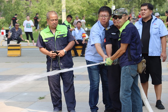 在快速啟動(dòng)消防栓,連接消防水帶場(chǎng)景模擬中,參與演練的工作人員,動(dòng)作敏捷,安裝準(zhǔn)確,配合有序,第一時(shí)間消滅火情。