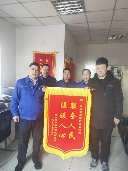 12月18日上午,新城區(qū)天驕領(lǐng)域的物業(yè)鮑經(jīng)理將一面寫有服務(wù)人民、溫暖人心的錦旗送到了城發(fā)管網(wǎng)公司副經(jīng)理任強的手中,特向城發(fā)供熱管網(wǎng)公司表示衷心感謝!