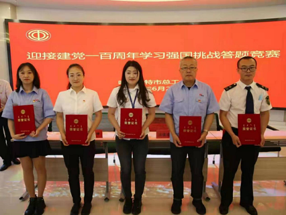 本次競(jìng)賽活動(dòng)為慶祝中國(guó)共產(chǎn)黨成立一百周年,依托"學(xué)習(xí)強(qiáng)國(guó)"平臺(tái),按照"挑戰(zhàn)答題"比賽規(guī)則,千余名職工參加,經(jīng)過(guò)層層選拔,預(yù)賽、決賽,最終評(píng)選出15名獲獎(jiǎng)選手,城發(fā)物業(yè)公司梁婷和城發(fā)供熱辛家營(yíng)分公司于鐵強(qiáng)榮獲二等獎(jiǎng),城發(fā)供熱辛家營(yíng)分公司胡一利榮獲三等獎(jiǎng)。