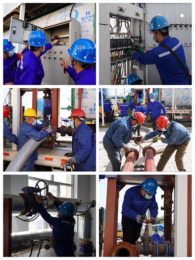 演練伊始,參加演習的運營所、司爐車間、檢修車間、電氣車間、儀表車間、設備處、安保處等人員按照預設的情境,各司其職,開始了管路連接、電源接入、鍋爐調試,再進行循環(huán)泵、補水泵盤車的調試,以及補水、循環(huán)泵啟動、鍋爐點火等等一系列有條不紊的實戰(zhàn)操作。