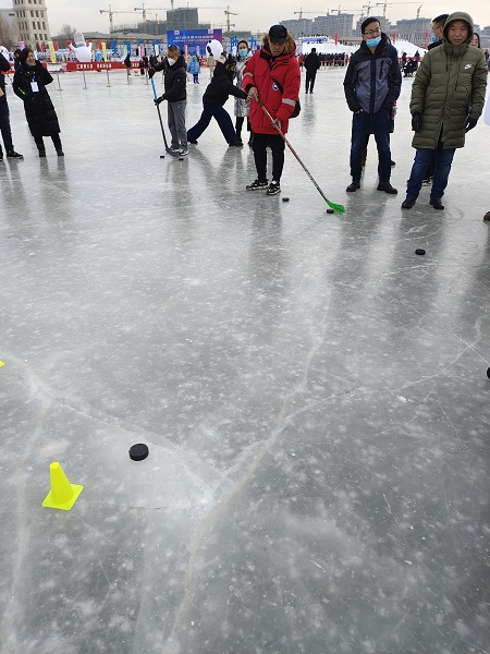 運(yùn)動會設(shè)置了冰球射擊、雪圈投擲、冰車大作戰(zhàn)、冰壺撞擊、抽冰陀螺5個項(xiàng)目,形式簡單、易于參與、趣味性強(qiáng)?,F(xiàn)場,冰壺、冰球射門設(shè)施擺滿了整個場地,職工們躍躍欲試。運(yùn)動會上,集團(tuán)公司運(yùn)動員不懼嚴(yán)寒,團(tuán)結(jié)一致、相互鼓勵,充分享受著運(yùn)動帶來的樂趣,也在運(yùn)動中加深了對冰雪運(yùn)動的熱愛與了解。
