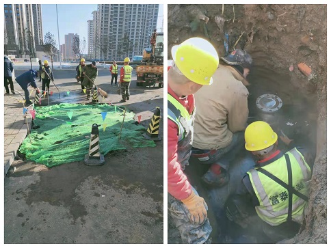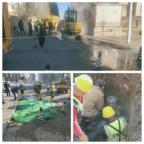 大年初二這天早上,富泰熱力公司巴彥分公司廠區(qū)門口路面滲水,疑似一次網(wǎng)發(fā)生跑水。得知這一情況后,分公司檢修所工作人員在對(duì)跑水位置進(jìn)行初步判斷后,立即聯(lián)系了安裝分公司。嚴(yán)陣以待的安裝分公司搶修隊(duì)員第一時(shí)間趕往現(xiàn)場,發(fā)現(xiàn)現(xiàn)場有配電箱,地下有電纜、天然氣管,機(jī)械開挖比較危險(xiǎn),于是人工對(duì)路面進(jìn)行開挖,進(jìn)一步尋找漏點(diǎn)。經(jīng)過查找,發(fā)現(xiàn)是一次網(wǎng)上一個(gè)50抽頭發(fā)生跑水,他們不顧刺骨寒風(fēng)帶水作業(yè),給抽頭焊接了一個(gè)150的套管,又在套管上安裝了一個(gè)150的法蘭球閥,等做好保溫回填地面后,已經(jīng)是第二天凌晨4點(diǎn)了。大年初五,安裝分公司又接到了左右城小區(qū)跑水搶修任務(wù)。由于施工難度較大,搶修隊(duì)員們一刻不停歇的干了一天才完成任務(wù),及時(shí)恢復(fù)了供暖。