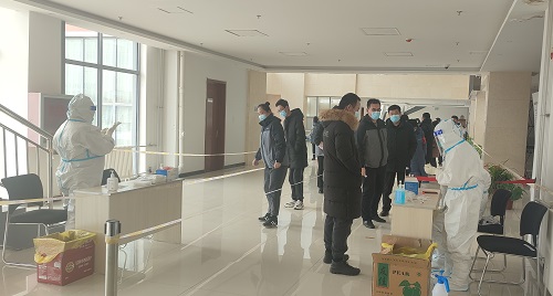 2月17日下午1點,惱包園區(qū)全員核酸檢測正在緊張有序的進行中,為做到不聚集扎堆,將檢測點設(shè)置在信息大廳門外,以確保通風(fēng)。依次劃分為4個區(qū)域,各區(qū)域都張貼了引導(dǎo)標(biāo)識,放置了人流隔離設(shè)施,分時段依次檢測。