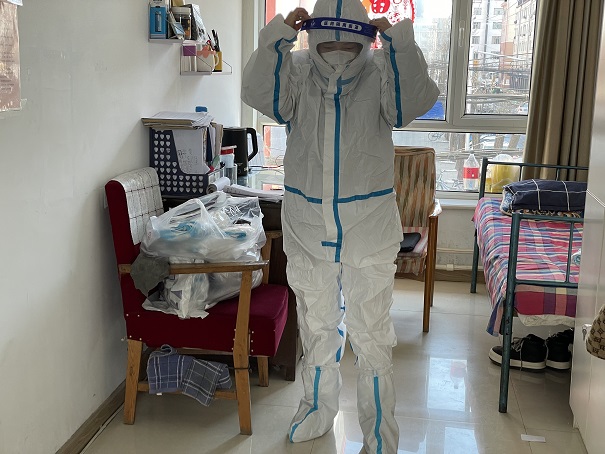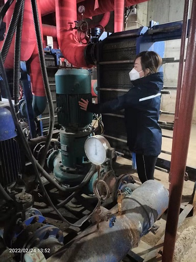 新華東分公司巨華朗域熱力站是受小區(qū)封控管理影響的第一個(gè)熱力站,公司臨時(shí)組建的運(yùn)營(yíng)小組的李文霞從17日小區(qū)封控以來(lái),一直在熱力站值守。2月24日,筆者來(lái)到長(zhǎng)樂(lè)宮供暖所,看到所長(zhǎng)李瑋潔正在和李文霞視頻通話:"每天的消殺要做好,你自己和你愛(ài)人的防護(hù)工作也要做好,站里運(yùn)行一切正常吧?你還需要什么物資嗎?"李瑋潔關(guān)切的詢問(wèn)、耐心的叮囑著。李文霞說(shuō):"站內(nèi)運(yùn)行一切正常,我每天都按照要求對(duì)站內(nèi)進(jìn)行消殺,我和我愛(ài)人也很注意防護(hù)工作,分公司委托疫情防控人員給我們送進(jìn)來(lái)的物資還有很多,請(qǐng)領(lǐng)導(dǎo)放心,我會(huì)一直堅(jiān)守在工作崗位上。" 筆者又看到一旁有位工作人員在穿防護(hù)服,李瑋潔告訴筆者:"武警小區(qū)熱力站也在封控區(qū)域,我們和疫情防控相關(guān)人員溝通后,每天由站員穿著防護(hù)服,戴著口罩、醫(yī)用手套、防護(hù)面罩進(jìn)行4次巡檢,現(xiàn)在正在穿隔離服準(zhǔn)備去巡檢的是索媛媛。"二十多分鐘后,索媛媛回來(lái),筆者看到她的隔離面罩上全都是霧氣,只見(jiàn)她熟練地將隔離服脫掉扔到指定的垃圾箱內(nèi),隨即開(kāi)始做常規(guī)的消殺。她告訴筆者:"以前看到防疫一線的醫(yī)務(wù)人員穿著防護(hù)服工作只是覺(jué)得他們很辛苦,但是自從我也需要穿防護(hù)服巡站時(shí),才有了親身的體驗(yàn),不僅防護(hù)服穿脫時(shí)不方便,而且著裝后行動(dòng)也變得不靈敏,我每次只穿半個(gè)小時(shí)左右就覺(jué)得很不舒服了,而醫(yī)護(hù)人員一穿就一整天,還不能上廁所,因此,我這點(diǎn)辛苦算不了什么。"
