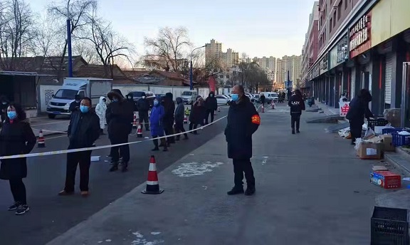 "沒(méi)事兒,天氣冷我堅(jiān)持堅(jiān)持就過(guò)去了,只希望疫情能快點(diǎn)兒結(jié)束。"2月28日下午,筆者在電子廠小區(qū)北口見(jiàn)到了正在寒風(fēng)中執(zhí)勤的新華東街分公司員工高晶晶。交談中筆者了解到,她每班要在這里堅(jiān)守六個(gè)小時(shí),沒(méi)有帳篷、也沒(méi)有取暖設(shè)備,看著她凍紅的雙手,聽(tīng)著她沙啞的聲音,筆者叮囑她要多喝水,高晶晶說(shuō):"我這里離衛(wèi)生間還有一段距離,所以我盡量不喝水,以免漏檢一人。"