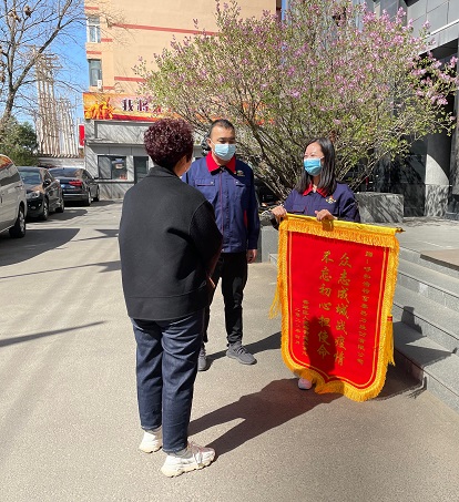 近日,賽罕區(qū)人民路街道辦事處健康社區(qū)黨支部書記鄭嬌把一面印有"眾志成城戰(zhàn)疫情 不忘初心擔(dān)使命"的錦旗送到富泰熱力公司事務(wù)管理中心,對疫情防控期間協(xié)助配合他們工作,并為他們送去所需物資的事跡表達(dá)謝意。