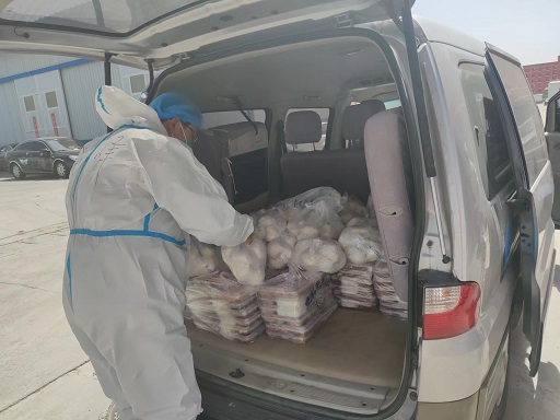 物流公司項目管理處負責人周峰,承擔本次疫情防控物資生活保障工作,負責園區(qū)內(nèi)的物資收發(fā)工作,1000余人一日三餐的分發(fā),他處處以身作則、任勞任怨、認真負責、每餐分發(fā)都親力親為。盤內(nèi)一分鐘,廚房更用功。隔離期間,他與廚房工作人員緊密配合,根據(jù)被隔離人員提出的意見和建議,不斷調(diào)整飯菜品種、營養(yǎng)搭配,讓隔離人員不但要吃得飽、還要吃得好。疫情防控期間,累計為被隔離人員和防疫工作者提供12597份快餐。