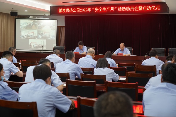 隨著全國第21個"安全生產(chǎn)月"的到來,為深入開展安全生產(chǎn)提升活動,推動安全生產(chǎn)月各項工作走深走實,提升全員安全素質(zhì)和應(yīng)急技能。6月1日上午,城發(fā)供熱公司在集團(tuán)公司18樓會議室舉行以"遵守安全生產(chǎn)法 當(dāng)好第一責(zé)任人"為主題的2022年"安全生產(chǎn)月"活動動員會暨啟動儀式,各分公司分會場通過多媒體同步進(jìn)行。城發(fā)供熱公司班子成員、部門負(fù)責(zé)人,各分公司班子成員及相關(guān)人員參加了此次活動。