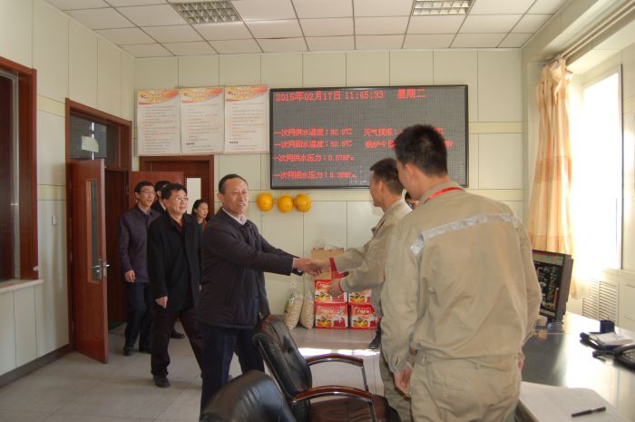 臘月二十九,黨委書記、總經(jīng)理張瑞平,黨委副書記、工會(huì)主席張永,黨委委員、副董事長(zhǎng)杜雄勇,黨委委員、副總經(jīng)理史繼文4人率隊(duì),分別到四個(gè)供熱分公司,深入車間、運(yùn)營(yíng)所、收費(fèi)大廳、熱力站,對(duì)一線員工進(jìn)行了慰問。(文/亞利)