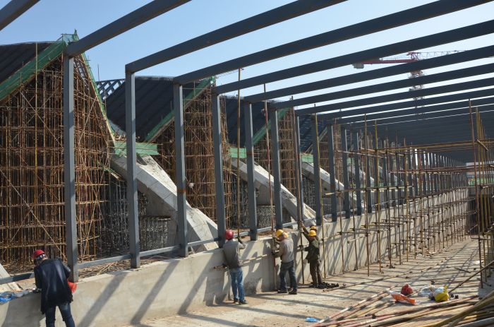 正在施工中的長途客運(yùn)東站進(jìn)車坡道。