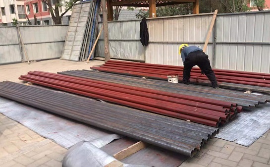 在如意小區(qū)A區(qū),材料現(xiàn)場工人們正在粉刷防腐漆,7號樓正在拆除單元立管;在如意小區(qū)B區(qū)和C區(qū),工人們正在拆除3號樓的單元立管,在現(xiàn)場看到拆下來的一段舊管,腐蝕非常嚴(yán)重,保溫層已完全沒有了,防腐漆分化了,一動就一片片掉下來了。