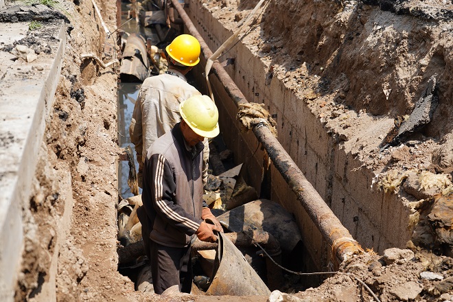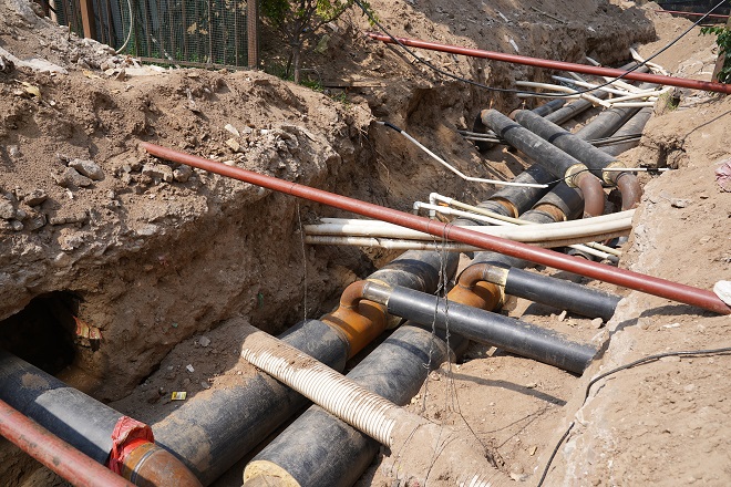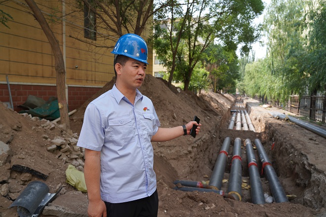 白云偉說(shuō),"這段供熱管線下面還有一段天然氣管線。這段管溝長(zhǎng)度僅55米多,但施工難度較大,機(jī)具僅開(kāi)挖了表層,其余是人工開(kāi)挖,人工開(kāi)挖就進(jìn)行了三天,55米管溝開(kāi)挖、鋪設(shè)管道就用了一周的工期。"