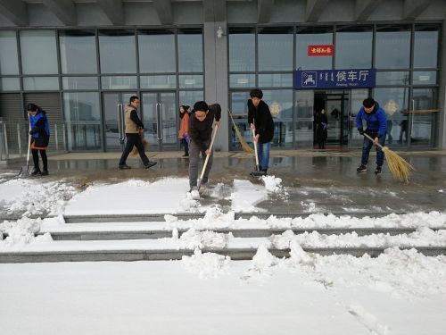 上午九點(diǎn)整,24名青年團(tuán)員準(zhǔn)時(shí)在城發(fā)客運(yùn)公司站前廣場(chǎng)集合,對(duì)站前廣場(chǎng)上的積雪進(jìn)行清掃。青年團(tuán)員們不怕臟,不怕累,經(jīng)過近一個(gè)小時(shí)的認(rèn)真清理,干凈整潔的站前廣場(chǎng)呈現(xiàn)在大家眼前。