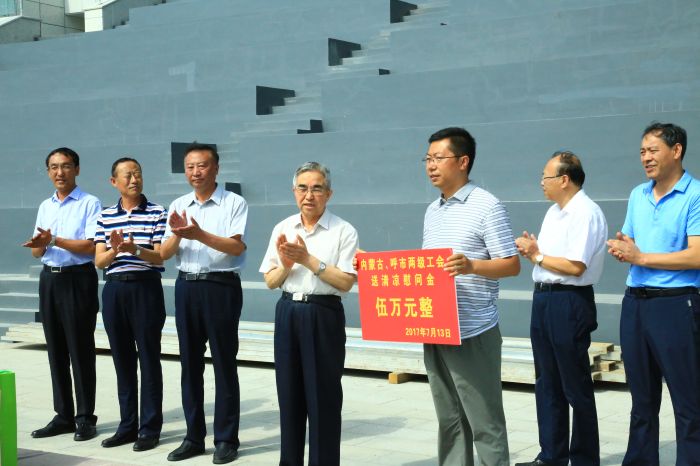 7月13日,內(nèi)蒙古自治區(qū)人大常委會(huì)副主任、總工會(huì)主席杭桂林,呼和浩特市政府副巡視員、黨組成員劉敏,市人大常委會(huì)副主任、總工會(huì)主席斯欽畢力格等一行向奮戰(zhàn)在我市重大項(xiàng)目重點(diǎn)工程內(nèi)蒙古少數(shù)民族群眾文化體育運(yùn)動(dòng)中心一線施工現(xiàn)場(chǎng)的工作人員進(jìn)行送清涼慰問(wèn)發(fā)放5萬(wàn)元慰問(wèn)金,表達(dá)了兩級(jí)政府對(duì)我市重大項(xiàng)目重點(diǎn)工程一線單位職工的深切問(wèn)候和關(guān)懷。城發(fā)公司董事長(zhǎng)、黨委書(shū)記張瑞平,黨委副書(shū)記、工會(huì)主席張永等領(lǐng)導(dǎo)陪同。文\陳柯羽