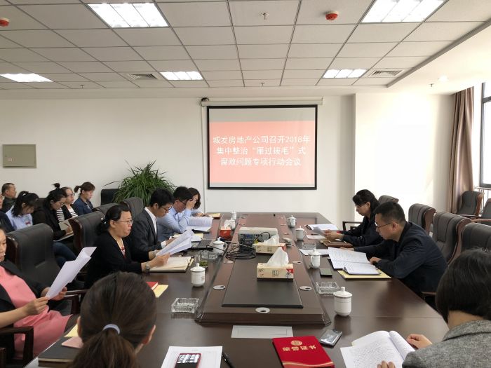 上午,城發(fā)房地產(chǎn)公司黨支部組織召開(kāi)了房地產(chǎn)公司2018年集中整治雁過(guò)拔毛式腐敗問(wèn)題專(zhuān)項(xiàng)行動(dòng)會(huì)議,公司全體干部職工共30人參加會(huì)議。