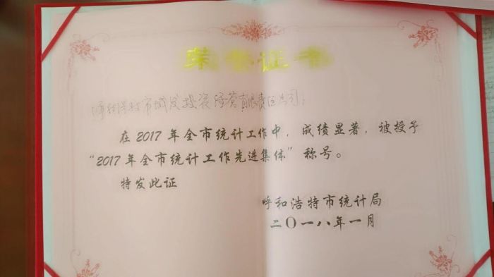 今年,市統(tǒng)計局對2017年全市統(tǒng)計工作先進集體進行了表彰,城發(fā)公司被授予