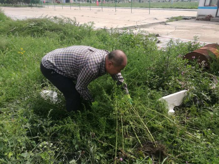 上午七點(diǎn),大家做好分工合作,不怕臟,不怕累,挽起袖子和褲腿開始勞動(dòng)起來,拔草、清運(yùn)雜草等各項(xiàng)工作井然有序。戶外溫度高達(dá)30多度,大家頂著烈日酷暑,個(gè)個(gè)汗流浹背、干勁十足,勞動(dòng)場面熱火朝天。雖然園區(qū)雜草分布范圍大,想徹底清除雜草并非易事,但是職工們不懼困難,依然在烈日下的草坪中認(rèn)真地尋找雜草并將其清除干凈。經(jīng)過大家兩天的共同努力,園區(qū)的雜草已基本清除干凈,億陽物流園區(qū)的整體環(huán)境煥然一新。