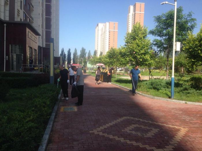 客服提升小組在小區(qū)明顯位置擺放展臺和宣傳畫向業(yè)主征詢服務(wù)滿意度,發(fā)放關(guān)于消防安全等宣傳單;保潔綠化小組成員配合小區(qū)全體保潔人員開展清掃環(huán)路衛(wèi)生、撿拾草坪內(nèi)的垃圾、清洗垃圾箱等衛(wèi)生清潔工作;工程提升小組成員對金城小區(qū)的單元門開啟不靈、關(guān)閉不嚴(yán)等問題進(jìn)行了現(xiàn)場維修。