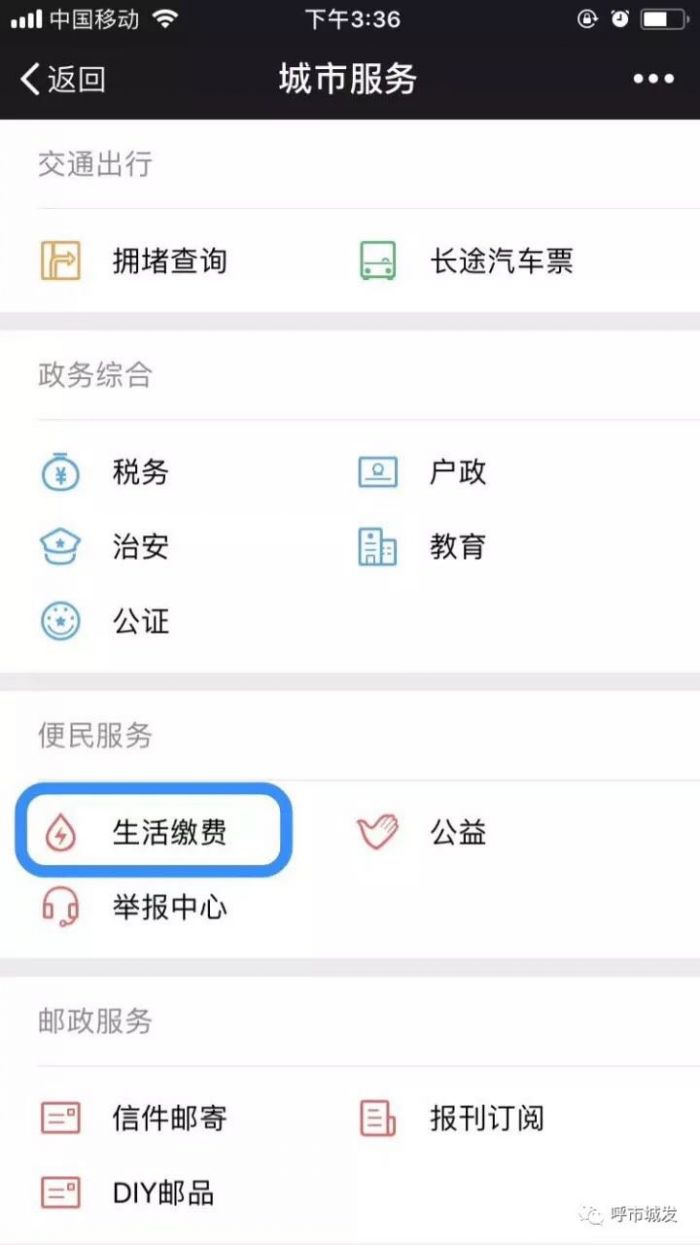 正確的微信繳費(fèi)流程:我-錢包-城市服務(wù)-便民服務(wù)(生活繳費(fèi))-呼和浩特城發(fā)供暖繳費(fèi)(官方)