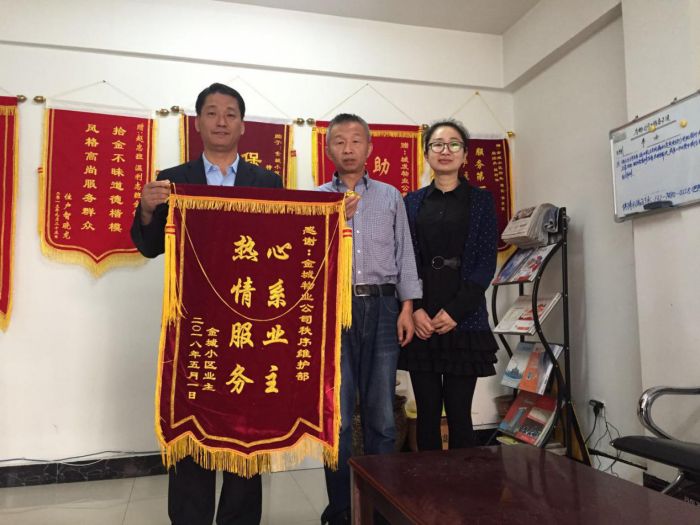 在大家的共同努力下,物業(yè)服務(wù)品質(zhì)提升百日行動(dòng)工作得到了業(yè)主的好評與支持,項(xiàng)目處先后收到業(yè)主送來的三面寫有急業(yè)主所急 幫業(yè)主所需、心系業(yè)主 熱情服務(wù)、服務(wù)第一全心為民 客戶至上暖至人心的錦旗。