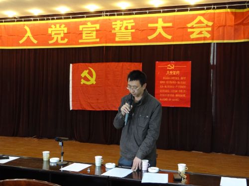 會場肅穆莊嚴,主席臺正中懸掛著中國共產(chǎn)黨黨旗。在雄壯的《國際歌》聲中,儀式拉開了序幕,四名預(yù)備黨員在黨小組長的帶領(lǐng)下,緊握右拳,面對黨旗莊嚴的進行了宣誓,表達了為共產(chǎn)主義事業(yè)奮斗終生的決心。儀式結(jié)束后,預(yù)備黨員代表張學文進行了發(fā)言,表達了能成為中國共產(chǎn)黨一員的激動和光榮,同時也深切感受到了責任感和使命感,今后要時刻以黨員標準嚴格要求,努力工作,堅定信念,為黨的事業(yè)努力奮斗,再立新功。