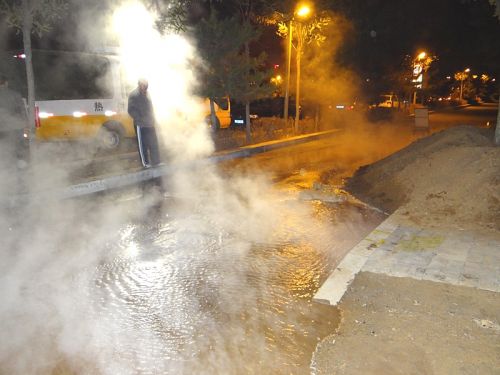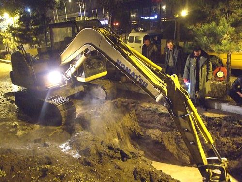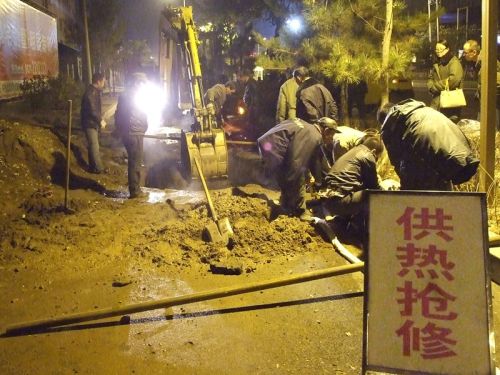 工作人員兵分幾路,對一次網(wǎng)和熱力站進(jìn)行泄水,同時(shí)在跑水地點(diǎn)進(jìn)行開挖,并將水抽干,待破損管網(wǎng)露出后,按預(yù)定技術(shù)方案進(jìn)行更換和焊接。時(shí)值入冬,夜間溫度已在零下,相關(guān)領(lǐng)導(dǎo)及搶修人員一直在現(xiàn)場工作,無人休息,毫無怨言。在寒風(fēng)中工作人員咬緊牙關(guān),爭分奪秒,連續(xù)奮戰(zhàn)了10多個(gè)小時(shí),終于在第二日凌晨7時(shí),成功將跑水事故處理完畢,并于12時(shí)恢復(fù)了熱力站正常運(yùn)行。