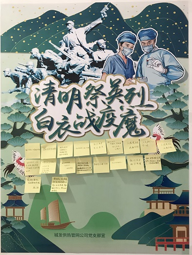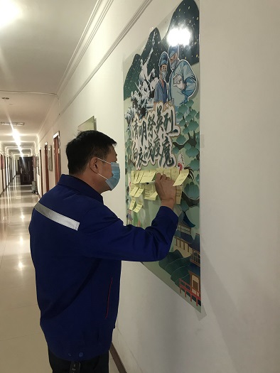 黨支部還制作了祭奠海報,張貼在樓道醒目位置,黨員群眾可以隨時進(jìn)行祭掃活動,并留下祭掃寄語,祭奠在中國革命、建設(shè)、改革歷史進(jìn)程中英勇犧牲烈士的同時,致敬在抗擊疫情一線犧牲的醫(yī)護(hù)人員、公安干警等"逆行英雄"。