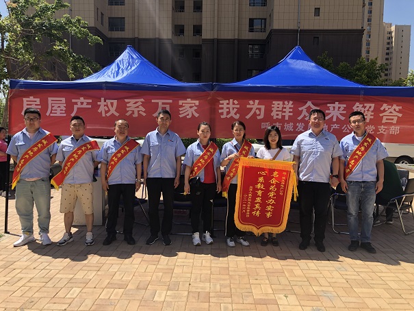 619日,房地產(chǎn)公司黨支部組織公司全體黨員干部、積極分子和職工13人赴陽光美居公租房小區(qū)開展房屋產(chǎn)權(quán)系萬家、我為群眾來解答進社區(qū)系列活動。