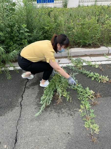 活動中,黨員干部發(fā)揮先鋒模范帶頭作用,他們手握剪刀、鐵鍬、摳縫刀等勞動工具,或是剪、或是鏟、或是拔,揮汗如雨,體現(xiàn)了黨員干部“辦實(shí)事”的工作作風(fēng)。全體職工群眾以黨員干部為榜樣,認(rèn)認(rèn)真真學(xué)習(xí)辨別黃花蒿、沙蒿、大籽蒿、艾蒿、豬毛蒿、冷蒿等16種蒿屬植物,仔仔細(xì)細(xì)的清理所有蒿草。